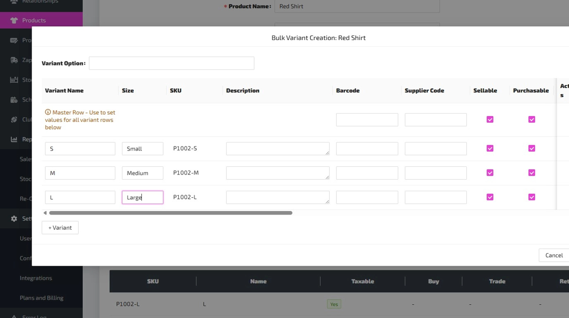 - Purchasable - If ticked, this product/variant will be available to add onto Purchase Orders.