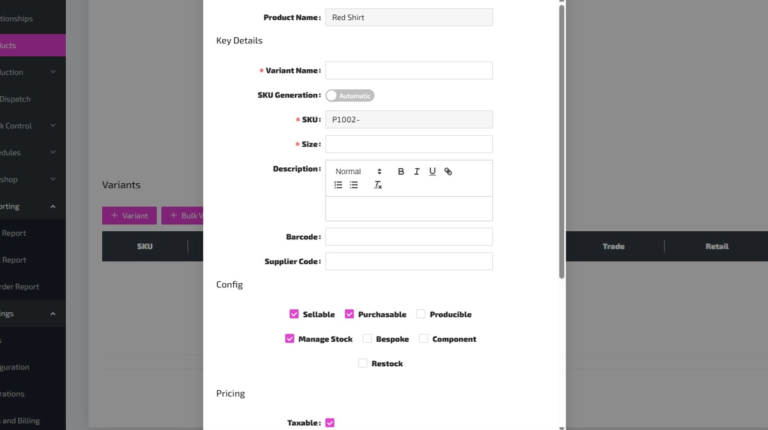 For guidance with the other fields on the Variant form, refer back to the Product Form guide.