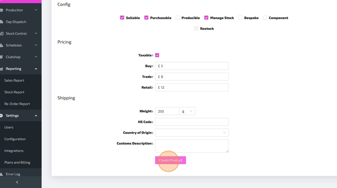 - Restock - If ticked, this product will appear within Reporting > Re-Order Report, which can help you to replenish stock before running out.